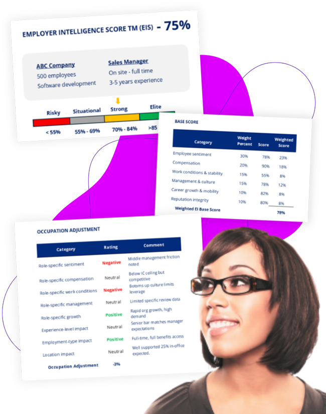 As a result, the score becomes more than a number, it becomes a verifiable, role-specific framework for understanding your potential or current work environment with clarity and trust.