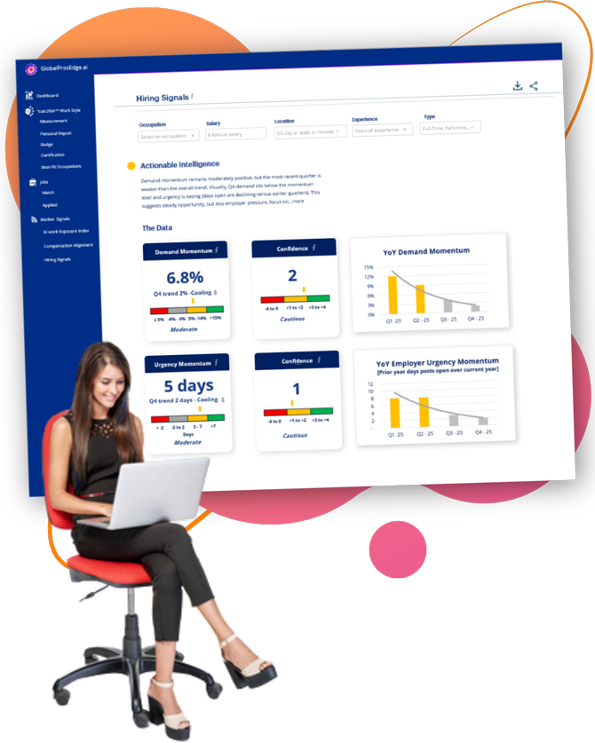 - Measures hiring momentum for your best-fit occupations.